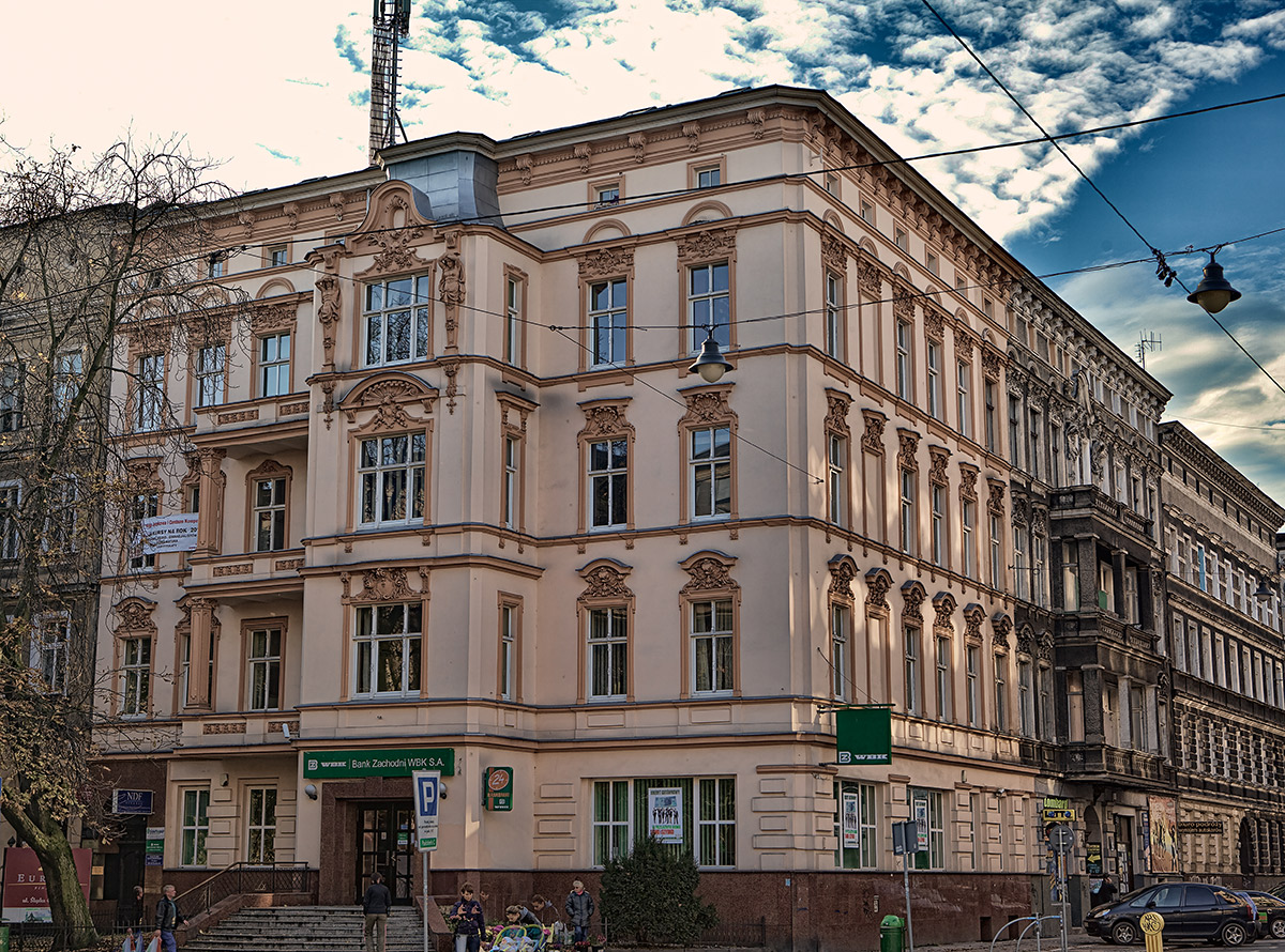 Zabytkowa kamienica 4-kondygnacyjna o powierzchni ponad 1.200m2, m.in. siedziba Oddziału BZ WBK S.A. Dogodna lokalizacja, róg Jagiellońskiej i Śląskiej. Bardzo dobre ceny wynajmu - już od 30zł/m2. Przestronne, ciekawe pomieszczenia. Budynek po remoncie. Stałe łącze internetowe, bliskość Urzędów, ścisłe centrum. Budynek po remoncie. Odnowiona elewacja, pomieszczenia biurowe wysokiej klasy.